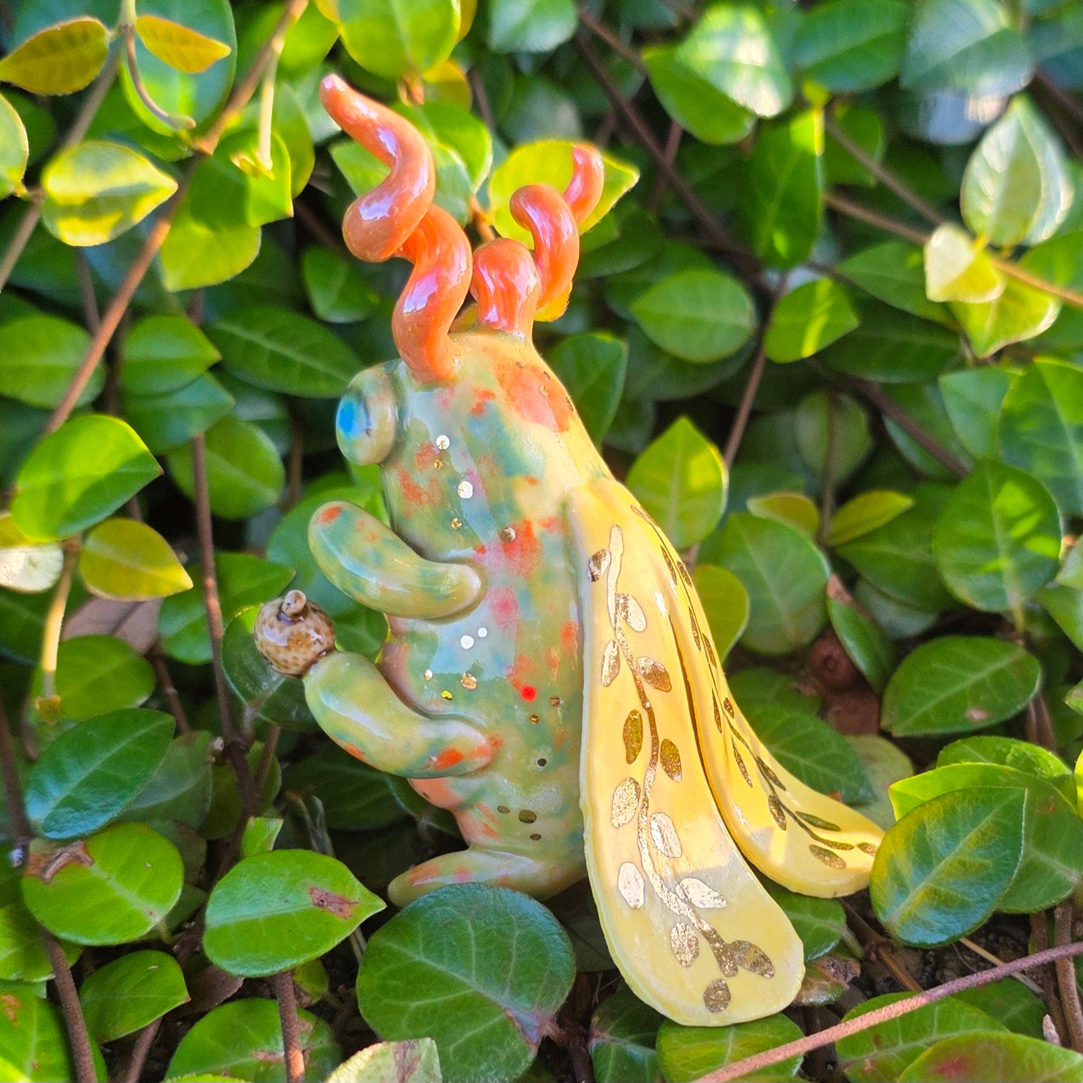 Made from kiln-fired porcelain clay and finished with iridescent and 22K golden details.