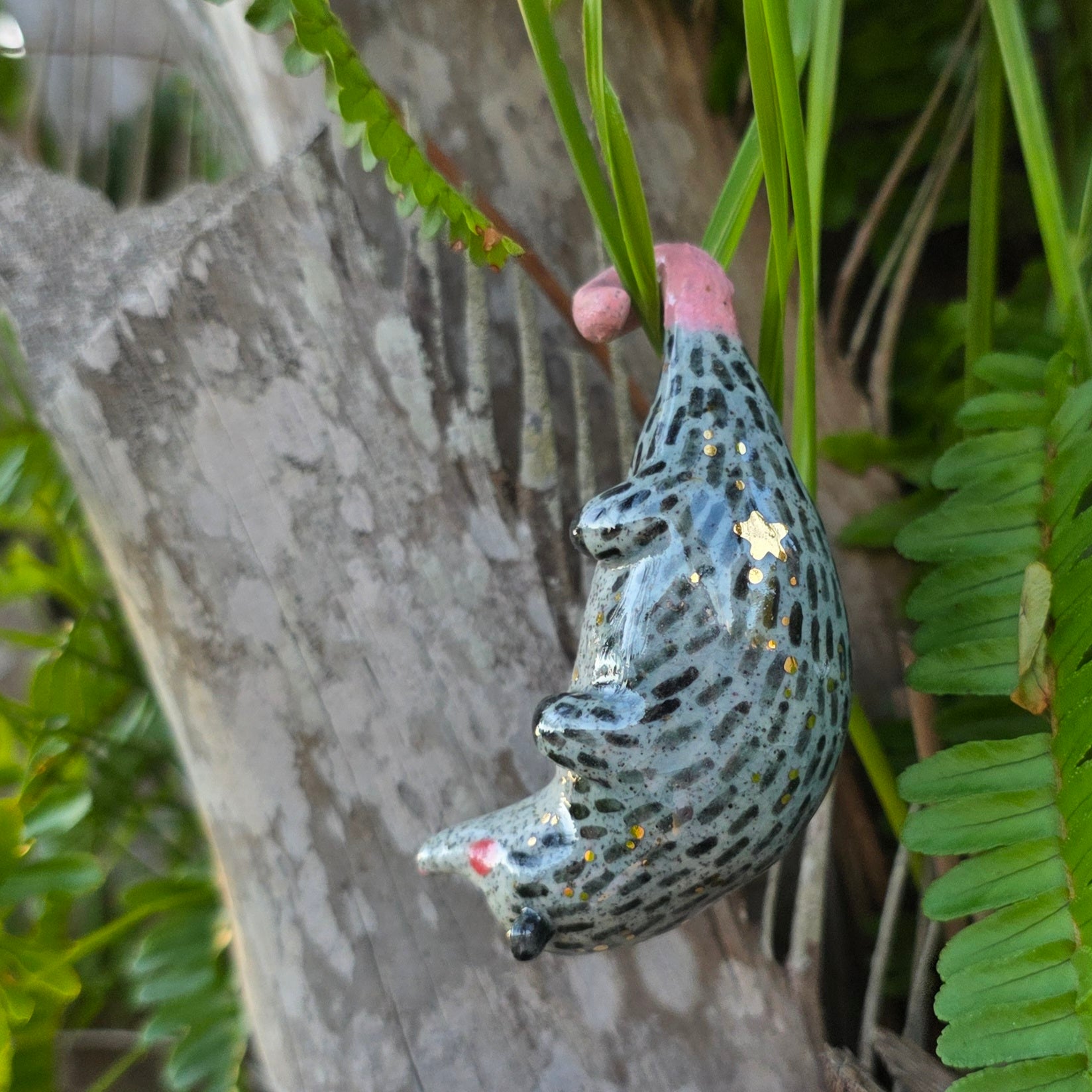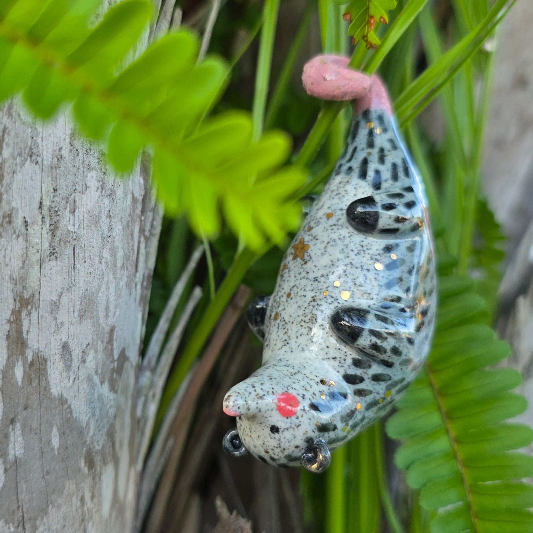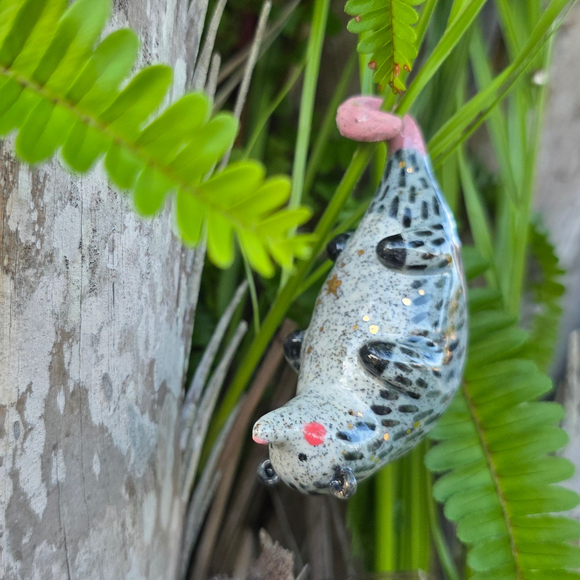 Sleepy little possum ready to hang out with your plants.  Made from kiln-fired speckled porcelain clay and finished with real 22K golden details.